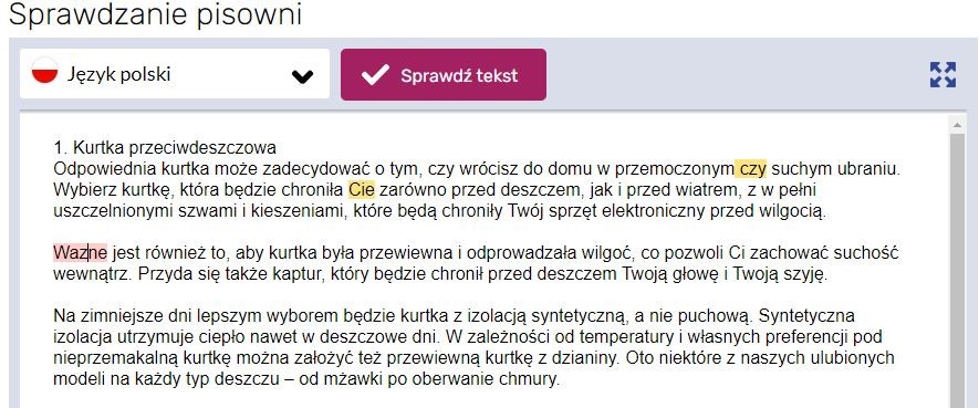 - Tworząc content, warto korzystać również z narzędzi, które pozwalają zadbać o jego jakość. Mowa np. o programach, takich jak m.in. Languagetool.org.
