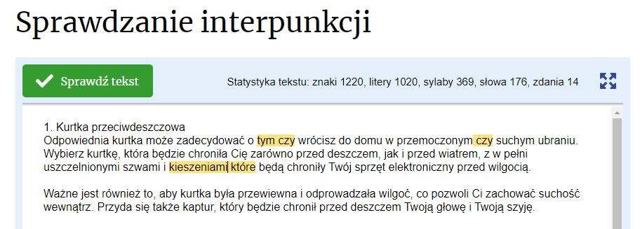 - Interpunkcja.pl – to serwis, w którym również można sprawdzić tekst, pod kątem poprawności interpunkcyjnej i ortograficznej.