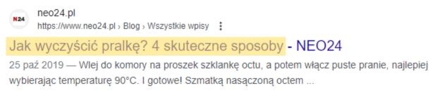 Powinien być krótki, zwięzły, prosty i zawierać wszystkie ważne informacje, których oczekuje odbiorca. Powinien zachęcać do klikania. Należy oddzielić Page title od redakcyjnego tytułu artykułu. Tytuł redakcyjny to ten, który jest widoczny na stronie i ma duży wpływ na czytelnika. Page title widoczny jest w wynikach wyszukiwania: