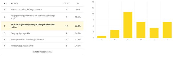 W innym, ale stosunkowo często spotykanym w e-commerce przypadku, użytkownicy traktowali koszyk jako schowek na produkty, które ich interesowały. Nie mieli zamiaru kupować ich w danym momencie, ale zabezpieczali się w ten sposób przed koniecznością ponownego ich wyszukiwania, kiedy już podejmą decyzję zakupową. Wskazówek w tym przypadku dostarczyły także pytania zadawane użytkownikom opuszczającym sklep.