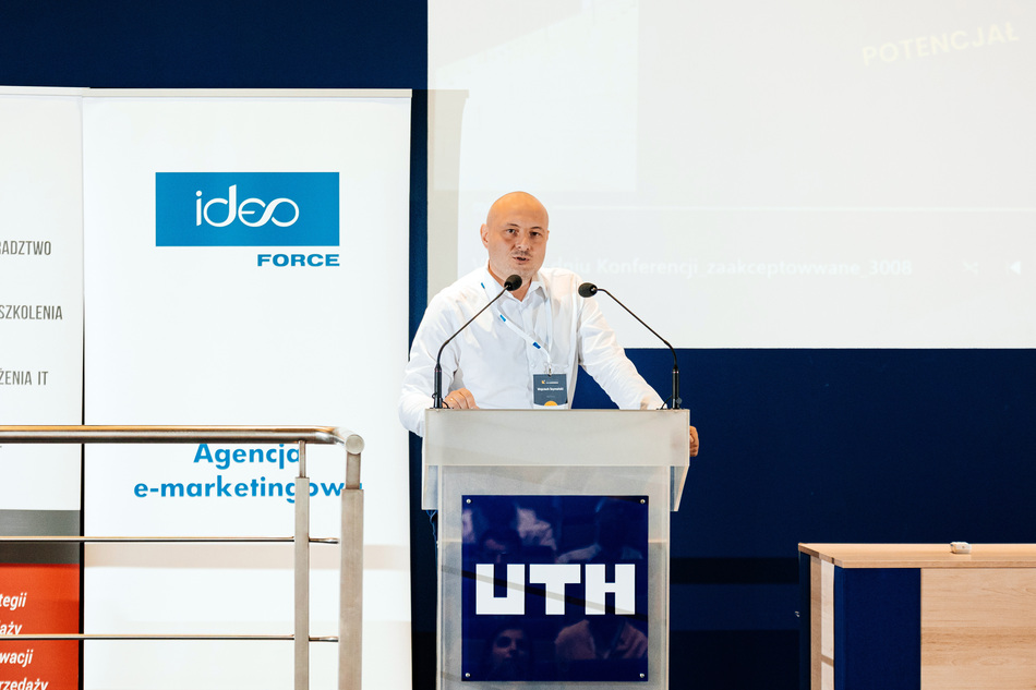 Po uroczystym otwarciu Konferencji odbyła się pierwsza z zaplanowanych w agendzie prelekcji pt. „Niegłupie pytania o sztuczną inteligencję. Wykorzystanie AI w marketingu – case studies”, którą wygłosił Creative & Content Manager Ideo Force – Paweł Szczyrek.