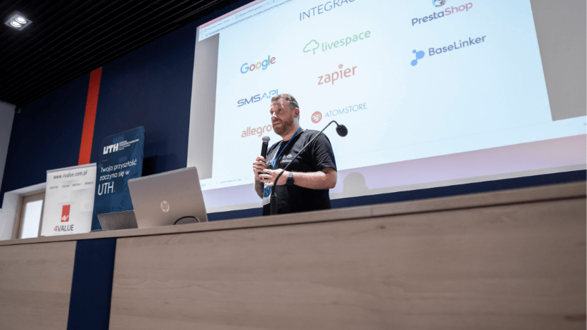 Trzecia prelekcja dotyczyła PIM, czyli zarządzania informacjami o produktach w sklepie internetowym. Marcin Lipiec z Ideo, wyjaśniał czym właściwie jest to narzędzie, co może zaoferować i w jaki sposób zwiększa sprzedaż w e-commerce.