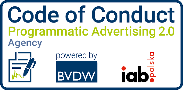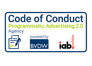 Jesteśmy również sygnatariuszem Kodeksu Dobrych Praktyk Reklamy Programmatic. Kodeks ten określa standardy i praktyki dla członków Programmatic. Skierowany jest do reklamodawców, agencji, platform: DSP (Demand Side Platform), SSP (Supply-Side Platform) oraz DMP (Data Management Platform), a także wydawców, dostawców danych i dostawców narzędzi do weryfikacji. Wspólnie tworzymy ekosystem programmatic w Polsce. Korzystamy z aktualnych rozwiązań cyfrowych o najwyższej skuteczności i dbamy o stosowanie na rynku dobrych praktyk.