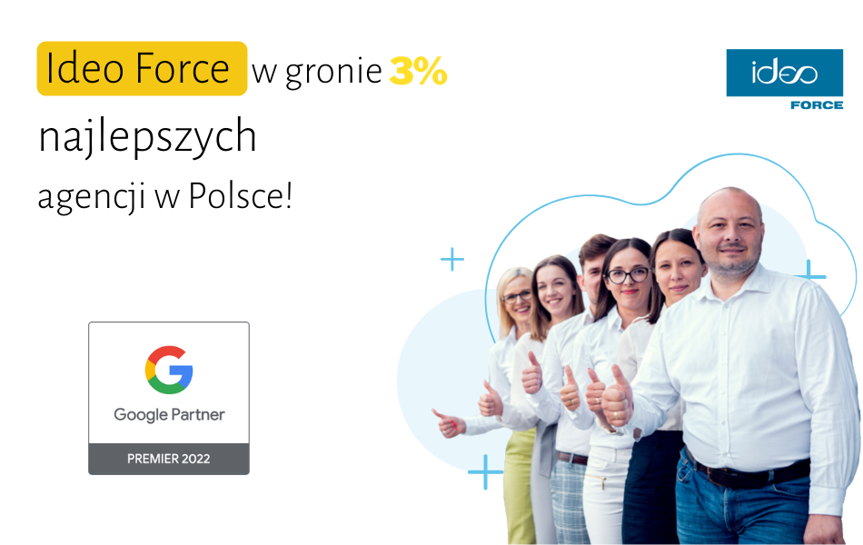 Miło jest nam poinformować, że Ideo Force zostało wyróżnione przez Google i znalazło się w elitarnym gronie 3% najlepszych agencji w Polsce!