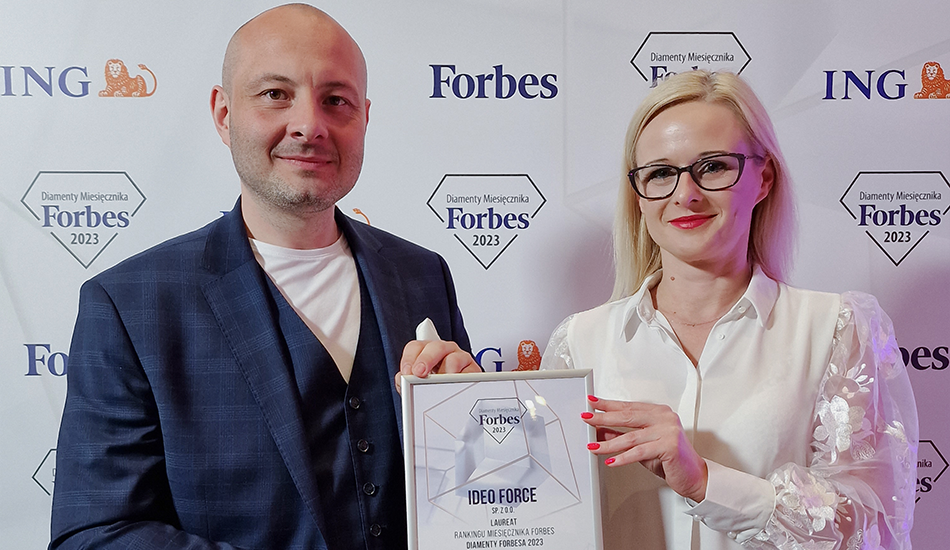 Kwiecień zakończyliśmy bardzo miłym akcentem. Wojciech Szymański - Dyrektor Zarządzający Ideo Force oraz Joanna Tymowicz - Wiceprezeska Zarządu agencji, wzięli udział w gali wręczenia Diamentów Forbesa.