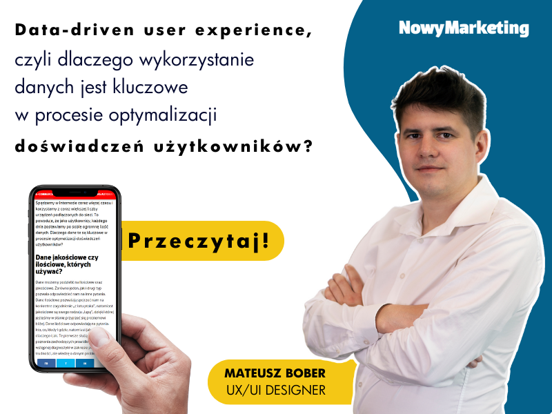 Ponieważ UX to jeden z bardzo istotnych obszarów e-marketingu, po Targach eHandlu postanowiliśmy jeszcze mocniej skupić się na temacie wykorzystania danych, w projektowaniu pozytywnych doświadczeń użytkowników. Listopad zaczęliśmy więc od artykułu autorstwa Mateusza Bobera, opublikowanego na łamach Nowego Marketingu.
