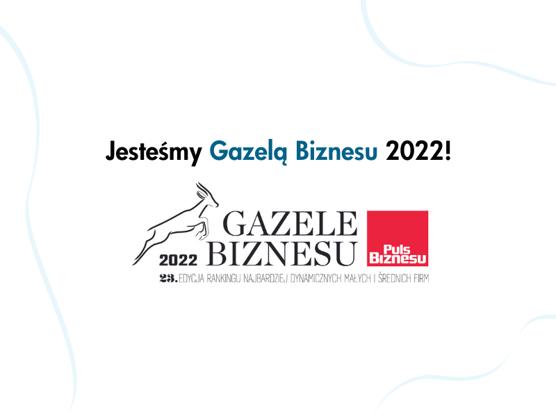 Rok #2022 zakończyliśmy otrzymaniem tytułu Gazeli Biznesu. Przynależność do grona Gazel mobilizuje nas do dalszego rozwoju i utwierdza w przekonaniu, że podążamy właściwą ścieżką, podejmując trafne decyzje biznesowe.