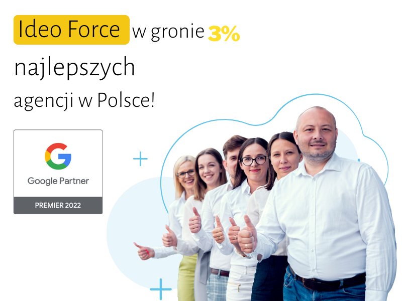 Złoty stempel „QUALID CERTIFIED” to nie jedyne wyróżnienie, które otrzymaliśmy wraz z początkiem roku. Już w lutym dowiedzieliśmy się, że Ideo Force znalazło się w gronie 3% najlepszych agencji w Polsce według Google! Tym samym otrzymaliśmy status Partnera Premium, w ramach nowego programu Google Partners, co było docenieniem osiągnięć naszej firmy w obszarze marketingu internetowego.