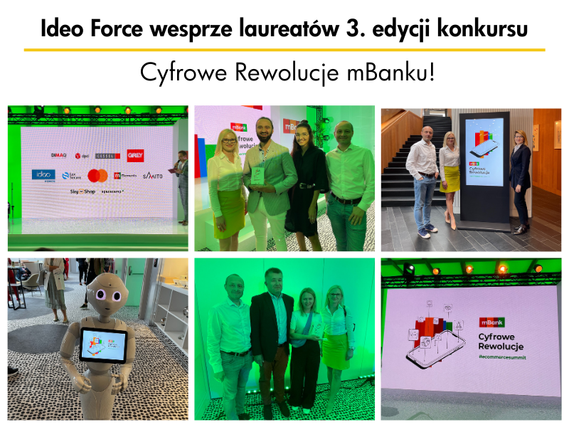 Czerwiec to także miesiąc, w którym kolejny raz zostaliśmy partnerem konkursu Cyfrowe Rewolucje, organizowanego przez mBank. Celem konkursu jest pomoc firmom, które chcą rozwinąć swoją działalność w cyfrowym świecie. Jako Ideo Force wspieramy laureatów konkursu, w zakresie działań z obszaru e-marketingu już od pierwszej edycji tego wydarzenia. Jesteśmy ekspertami w branży e-commerce, dlatego przygotowaliśmy dla zwycięskich firm wsparcie m.in. w postaci przygotowania skutecznej strategii marketingowej.