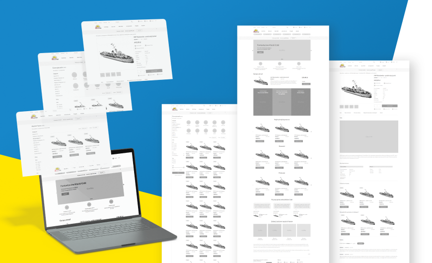 - Projektowanie - zaprojektowanie architektury informacji, makiet UX oraz projektu UI, które określiły kształt projektowanego e-commerce.